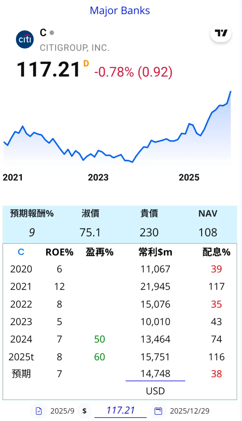 - **成長領域**:投資銀行費用年增 25% 至 8.4 億美元,受併購熱潮帶動(如 Walgreens 併購案);財富管理業務受益股市上漲。聯準會於 5 月解除 1.95 兆美元資產上限後,公司上調獲利目標,預期全年 NII 與 2024 年持平(約 477 億美元)。
