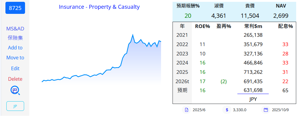 最近日幣大貶,今日買進日股MS&AD保險集團控股