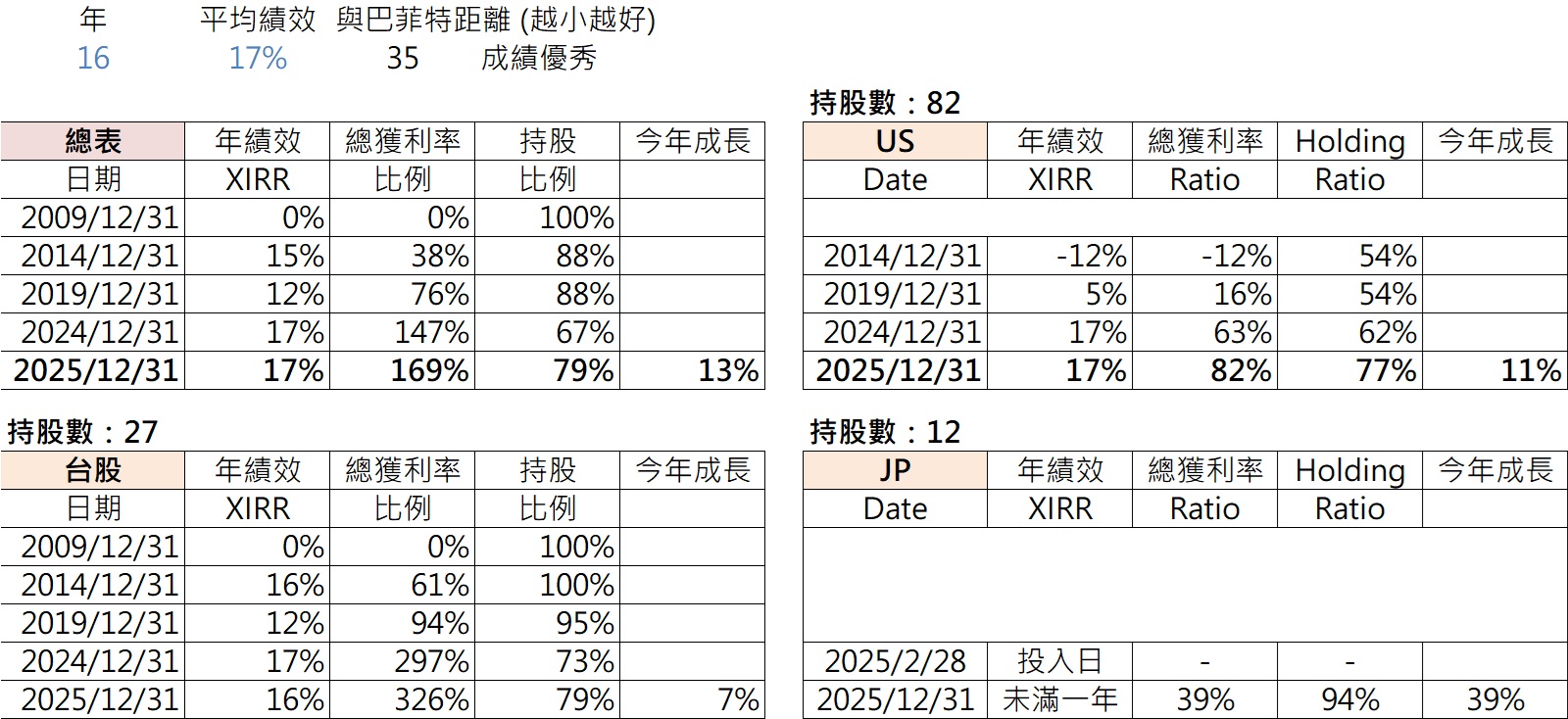 回顧自已的持股由2024年12月的持股67%狀態開始逐步加碼