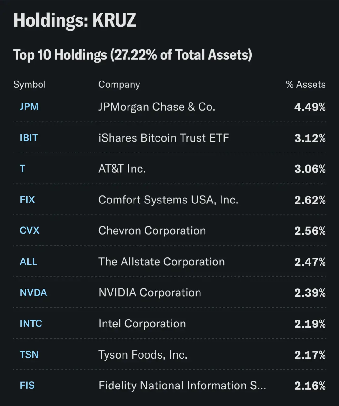 KRUZ 和 GOP 是同一支 ETF(Unusual Whales Subversive Republican Trading ETF),原代碼 KRUZ 已於 2025 年 3 月 21 日更名為 GOP。 追蹤美國國會共和黨成員及其配偶的股票交易。GOP 重金融、工業、能源等價值股。