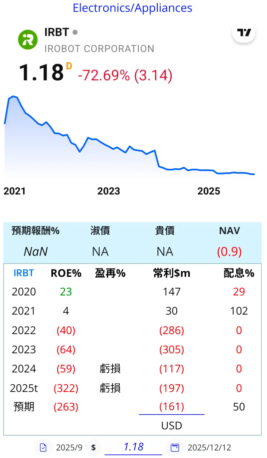 現在自己美股持股有50幾家,就已看得眼花撩亂...(不知道有一天上百家持股該怎麼辦....哈. WHR 惠爾普 PHG 飛利浦 ELUXY 電器 1f601 )......突然看到聿媃同學貼圖已達貴價有點驚訝,不過仔細看判斷應該是常利太低太不正常所致,,,,,再觀察看看,,,這家我持股占比不多,非常謝謝同學論壇分享