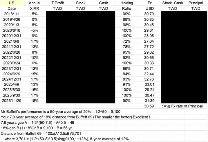 11/29/2025 持股90%,XIRR:18%與獲利皆創高,謝謝Mike帶領。