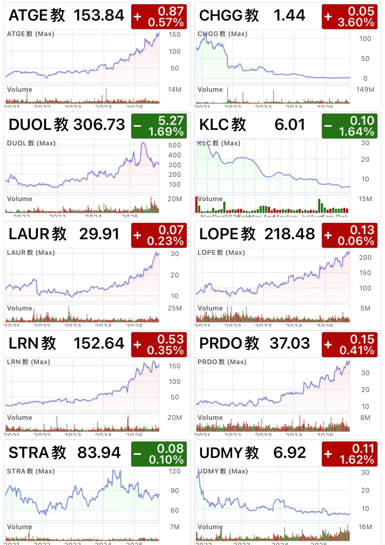 ATGE大漲13%,學生入學人數較去年同期成長1.9%,並上調2024會計年度營收及EPS指引ATGE LOPE LAUR PRDO STRA 教 美 D3yXyO6