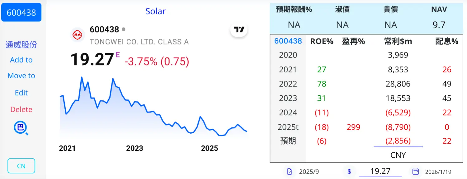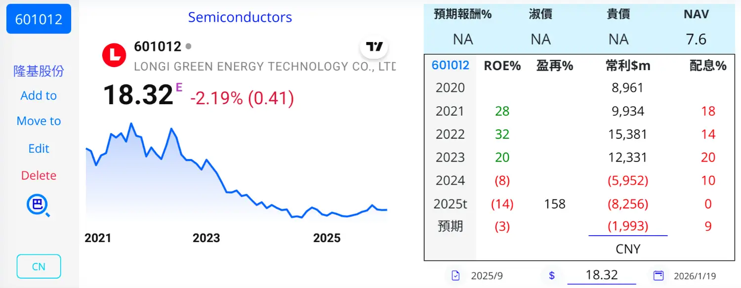 大陸太陽能產業景氣持續探底,兩大龍頭廠商隆基綠能與通威股份18日公布業績預告,均坦言在產能過剩、價格戰與產業內捲惡性競爭下,2025年將出現大幅虧損,反映整體營運環境仍相當嚴峻。