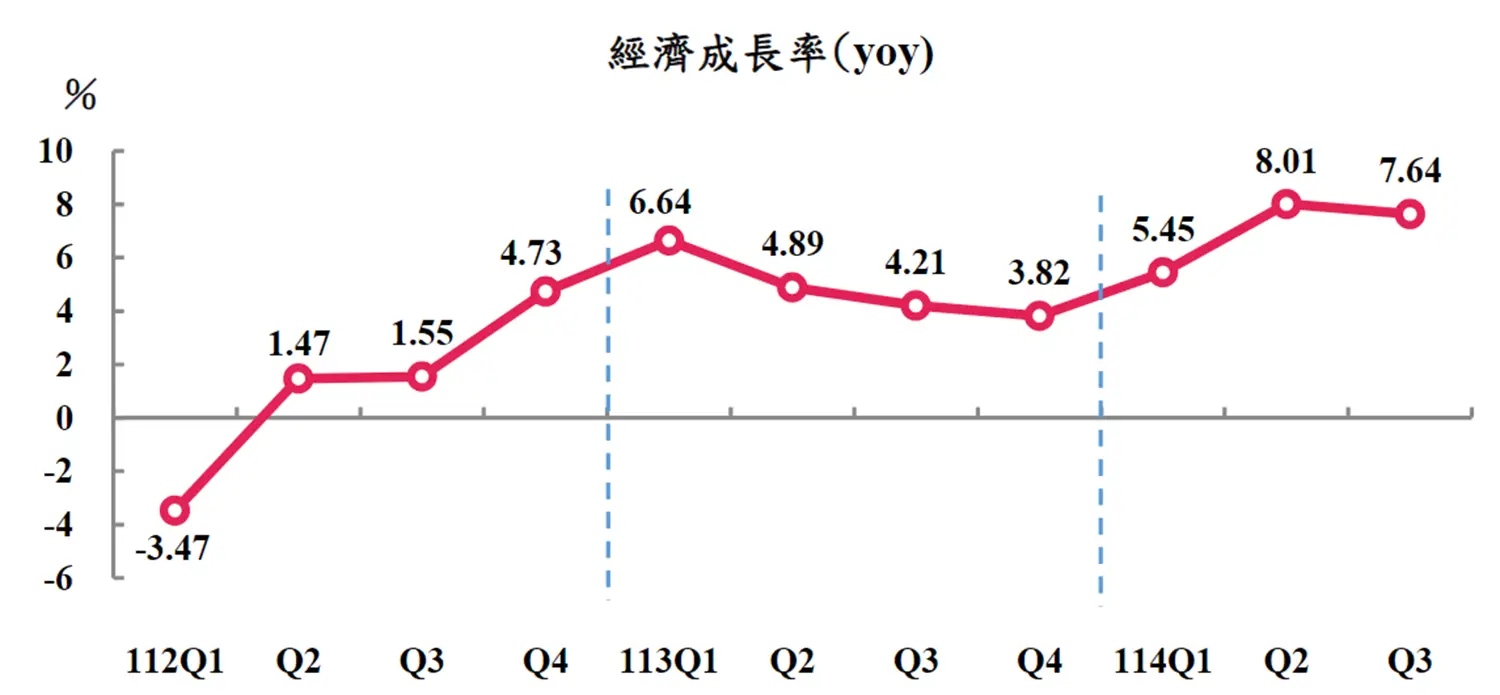 台灣GDP年增率2Q 8% 3Q 7.6%
