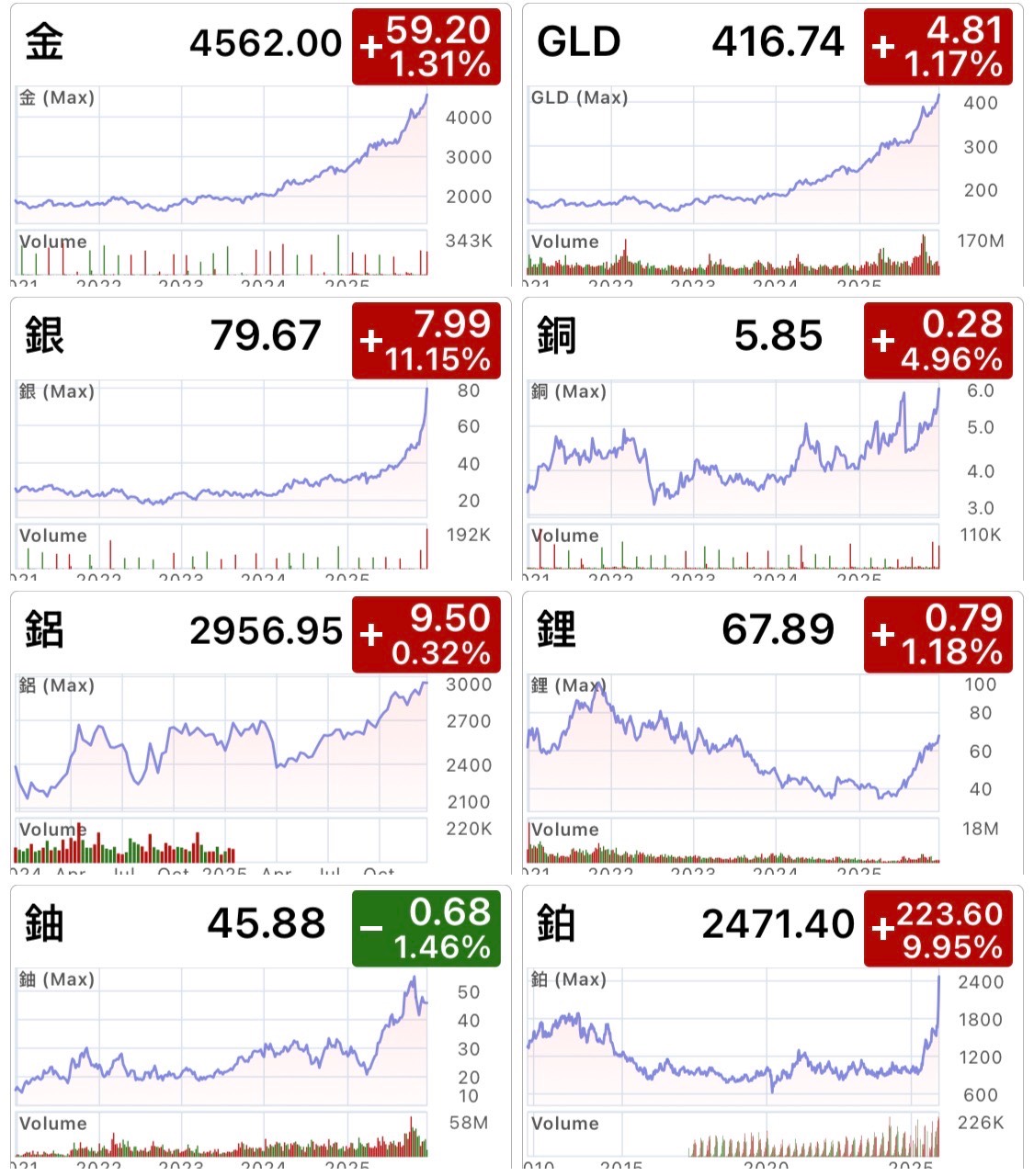 - 雙重屬性放大漲幅:兼具避險資產(如黃金)與強勁工業用途(太陽能電池板、EV、電子產品、資料中心)。