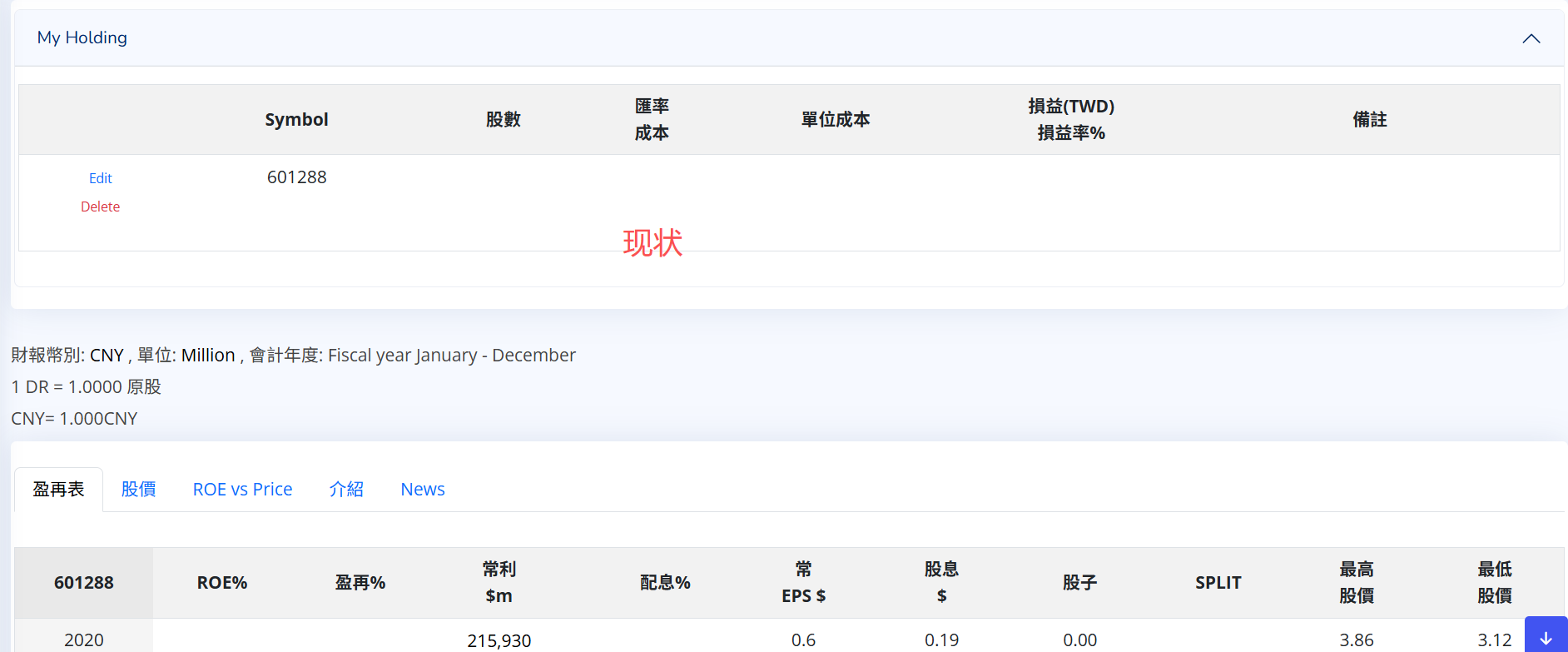 (b) 若未能取得當下的報價, 或當下報價=資料庫的收盤價時, 則價格維持正常黑體格式, 預期報酬率維持正常格式