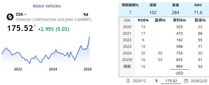 特種車輛製造商OSK +15%,2024全年營收超出預期、EPS 11.74美元較上年增加17.6%。