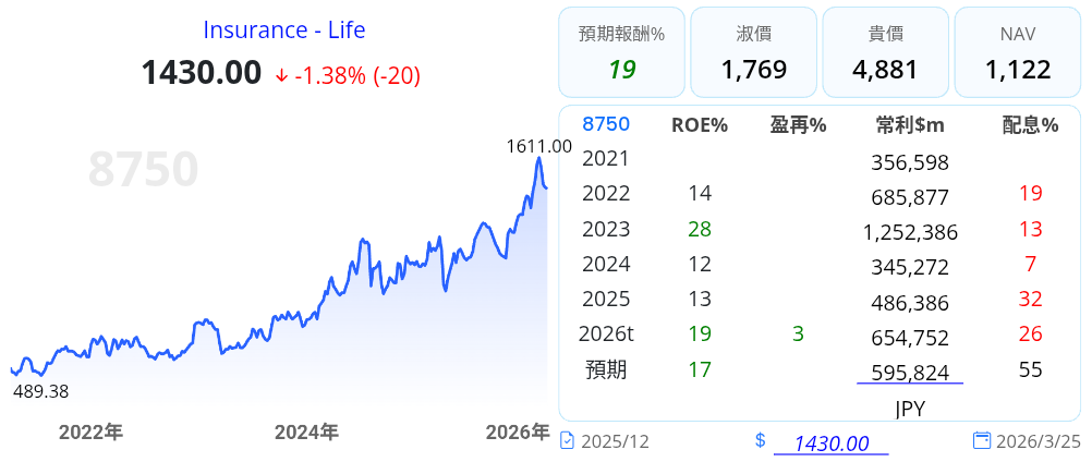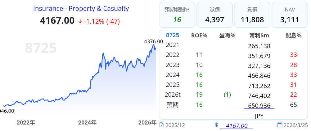 - 潛在風險:需注意日圓匯率波動對海外營收折算的影響,以及自然災害(如氣候變遷導致的賠付增加)對核保利潤的壓力。