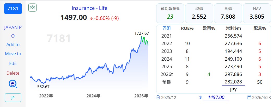 - 潛在風險:需注意日圓匯率波動對海外營收折算的影響,以及自然災害(如氣候變遷導致的賠付增加)對核保利潤的壓力。