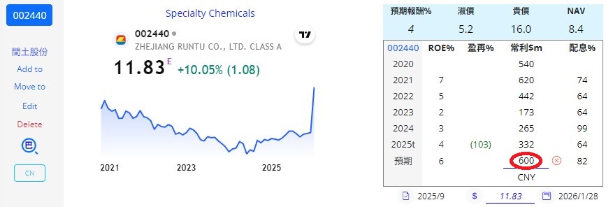 今天賣出中股一支: 浙江龙盛(600352.SH)