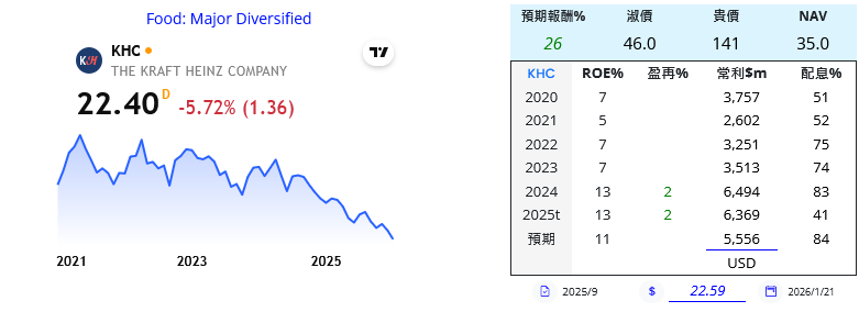 今日賣出KHC@22.4,原因: 表現不佳、謝謝Michael提醒關於波克夏要退出持有的KHC 28%股權