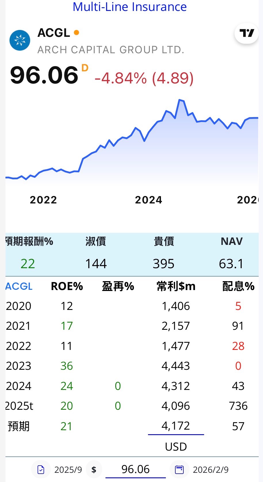 儘管營收略遜於預期,但 ACT 在獲利能力 (EPS) 和風險管理 (Loss Ratio) 上表現非常出色。這反映出在房貸利率波動的環境下,該公司仍能保持穩定的利潤邊際與強勁的現金流回饋股東。