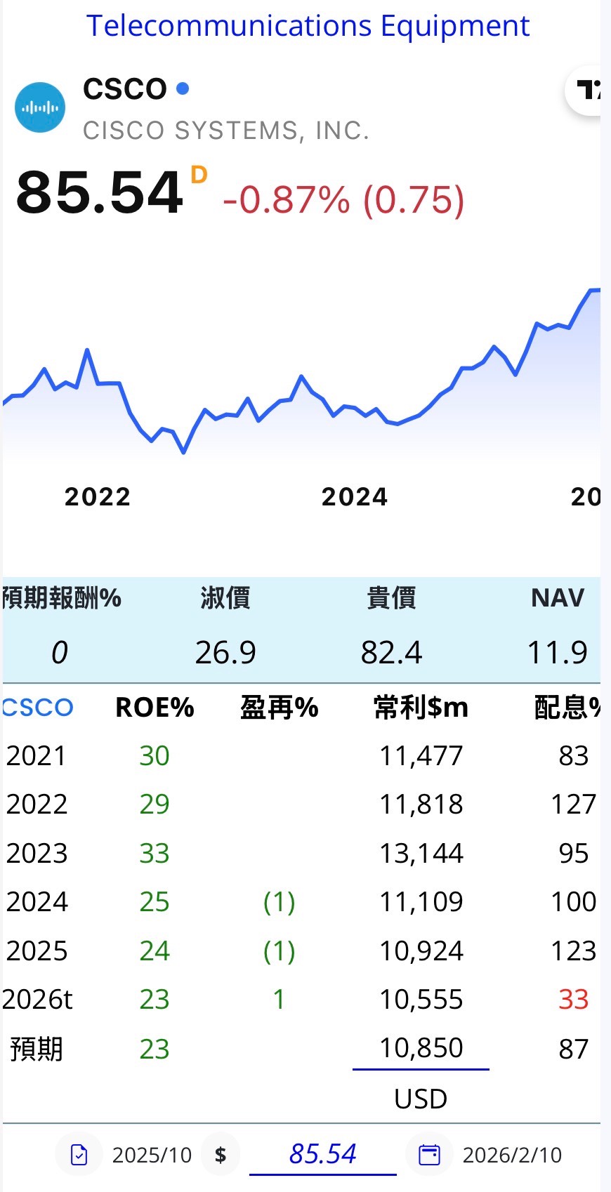美股 思科系統 (CSCO) 最新財報為 2026財年第二季度(截至2026年1月24日),於2026年2月11日公布。