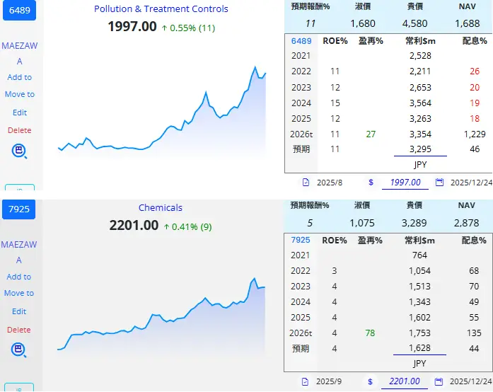6489前澤工業,我也賺了近1倍,日股除了大商社外,跟水相關的產業獲利也頗豐,除6489、6331三菱化工機、6254野村微科學這三支都是大賺的水資源相關公司。