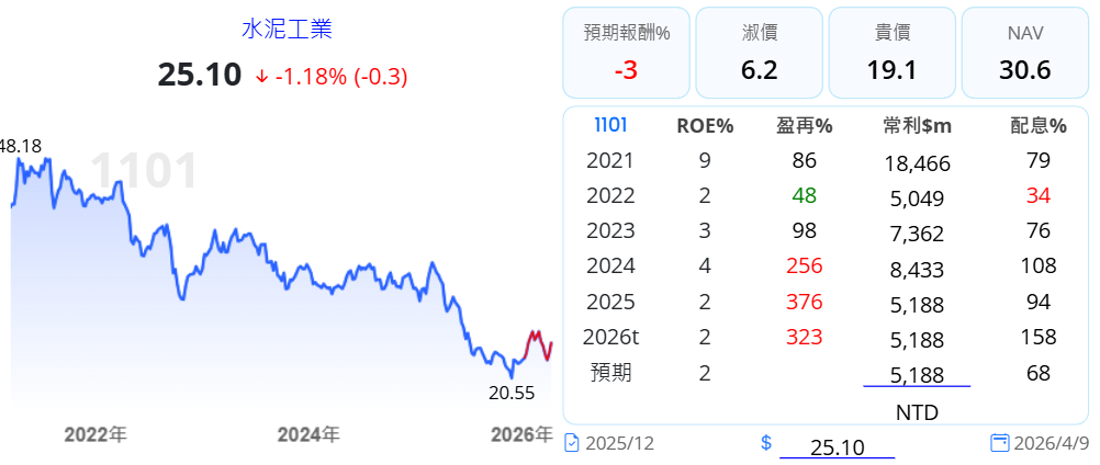 台泥公告,辜仲諒自 2025 年 12 月 29 日起至 2026 年 3 月 31 日止,經由集中市場交易方式取得台泥股份共40.61萬張,持股比例達5.26%。根據公告顯示,此次辜仲諒以自有資金約 81.56 億元及貸款 20.1 億元,共斥資 101.66 億元取得台泥股份,以此估算每股買進均價約 25.03 元,取得目的為投資。(鉅亨網)