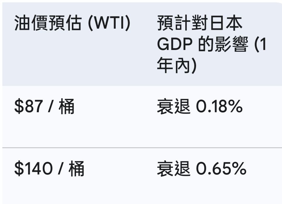 問:以伊戰爭有影響日本2026Q1~Q4的GDP嗎?日本官方數據,有提到嗎?