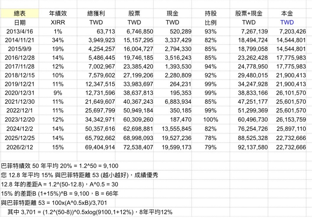 總表的今日(2/12) 是由程式加總 台股(2/12)+ 美股(2/12)