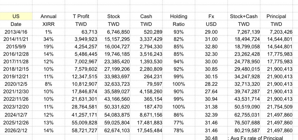(2) 在各表獨立下(假設本金幣別為TWD) ,意謂 總表的某一績效日, 需要先自行將台,美,日等的股票, 現金和本金換算成TWD並再予以加總, 然後填入總表頁?
